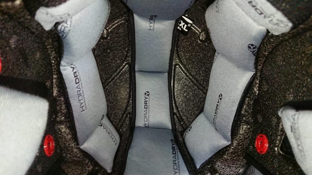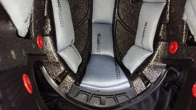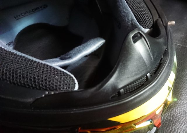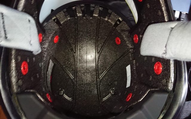 內襯,頭頂內襯有三條,蠻少見的內襯設計。 除了中間的頭頂內襯前面是用卡的外,其餘固定都是扣點。