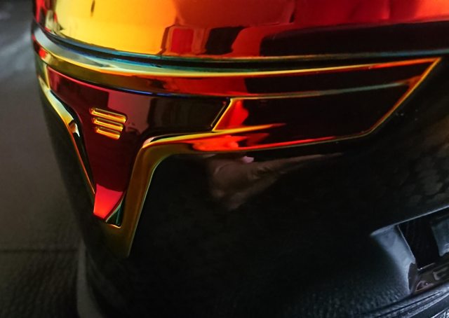 《體驗感想》 通風性,超級多的進排氣口(9 進、7 排),且都直通。 但可能受限氣道跟內襯設計的關係, 風就算進入帽內也沒辦法集中流動,整體抽風感沒有很強烈。 不過當初收到貨還是夏天,大中午橫跨整個大台北市區,沒什麼問題。 基本上除了紅燈外,不會有想讓我把鏡片拉起來的狀況。 而下巴罩之所以說微妙,在於他的中間透氣網布設計。 夏天確實可以帶來額外的氣流沒錯,但夏天真要那麼多氣流,其實會選擇直接拆掉。 問題在於冬天,下巴罩裝著永遠還是會有風透過網布竄上來,無解。 真要說,這設計如果建立在給兩種下巴罩,覺得會是加分的。 但只有一種可選的情況下,我會傾向下巴罩盡去可能做到擋風會好一些。 頭型上,對亞洲人的友善度遠高於同品牌的 Airflite。 但還是稍微偏窄,但沒 Airflite 那麼誇張的程度。 整體上,對我而言完全可以接受。 靜肅性,肯定是偏吵的,這點很多國外 YTer 也有提到。 但自從戴過純種越野帽後,可能對吵的概念完全不同,其實反而沒預想的誇張。 基本上,我個人日常使用的話,是都還能接受。 而進氣口開關設計, 國外有部影片開箱罵翻進氣口開關,但覺得還好? 可能電鍍後質感好很多的關係? 但至少他開關都算手感很明確的。 實際追焦: