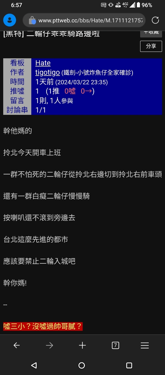 噓 god70541: 車板一堆愛PO廢文的往這裡來了 61.231.22.203 03/24 21:42
