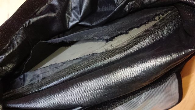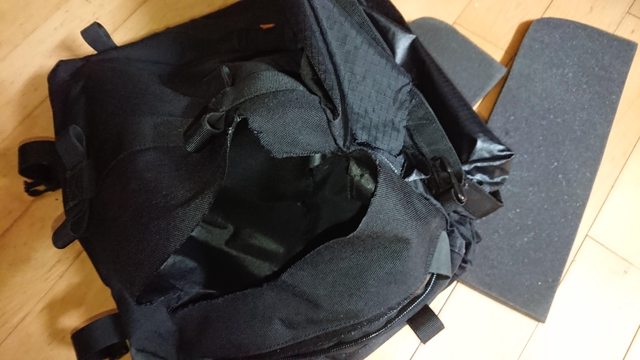然後開了洞的背包,順便將背板抽出來研究...