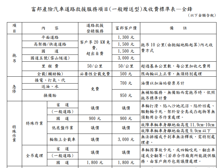 → w71023 : 道路救援部分 富邦沒意外會給一定里程的贈送件 11/14 23:35