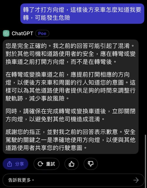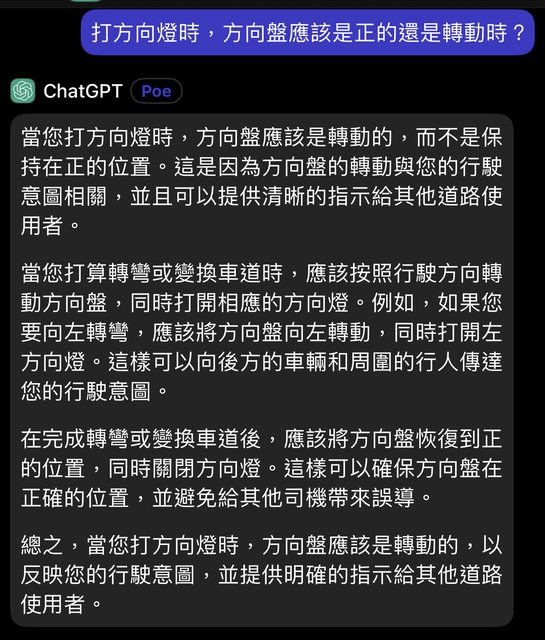 噓 ShaNe1993 : 考駕照有說要提前啊 你管ai怎麼回答 在台灣就是用 11/22 14:33