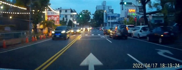 來看個真實案例,地點都是南投草屯中正路與登輝路路口,兩線車道經過路口後縮減為一
