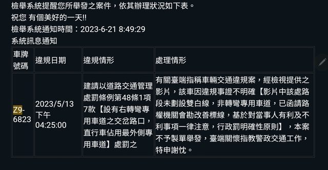 結果:不舉發
