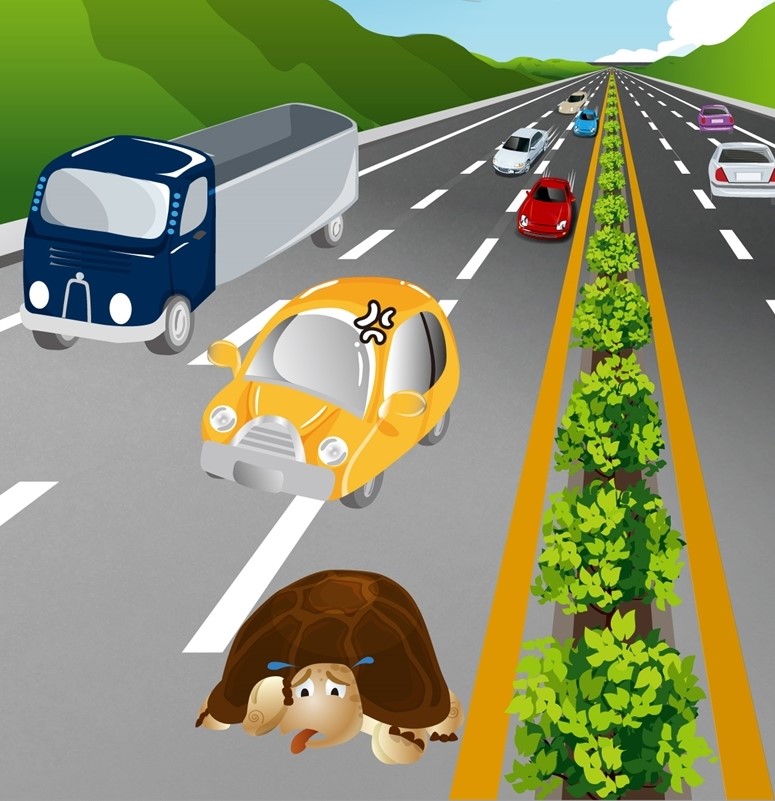 外線照跑,中線以110前進,碰到龜車從內線道超到前面再繼續往前