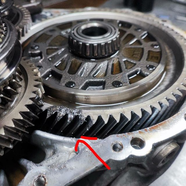 是裡面有個軸承的東西爆了,然後鋼珠把齒輪打崩了