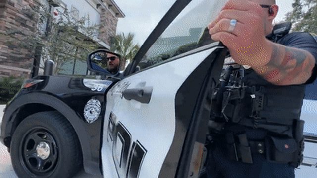 於是他去警局檢查警車的隔熱紙 (警察也配合他)