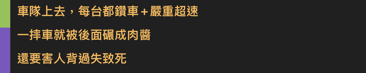 推 nervrain : 車隊上去,每台都鑽車+嚴重超速 12/20 15:58