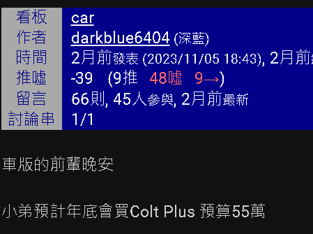 推 Jamie : colt plus 90萬??? 01/05 10:43
