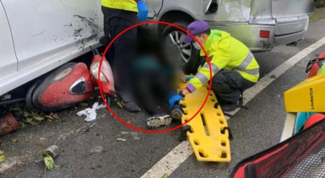 多處骨折重傷,旁邊幾名醫護人員,正在搶救。遭撞婦人老公:「他時速大概一百轉不過