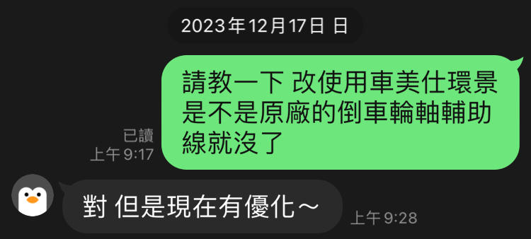 → DerekMing : 才有環境 只要用車美士日本原廠的倒車輪軸輔助線就 01/08 21:26