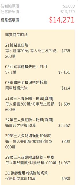 → summer08818 : 你第三人財損如果拉低一點的 超額1000保費會是多少? 01/23 15:43