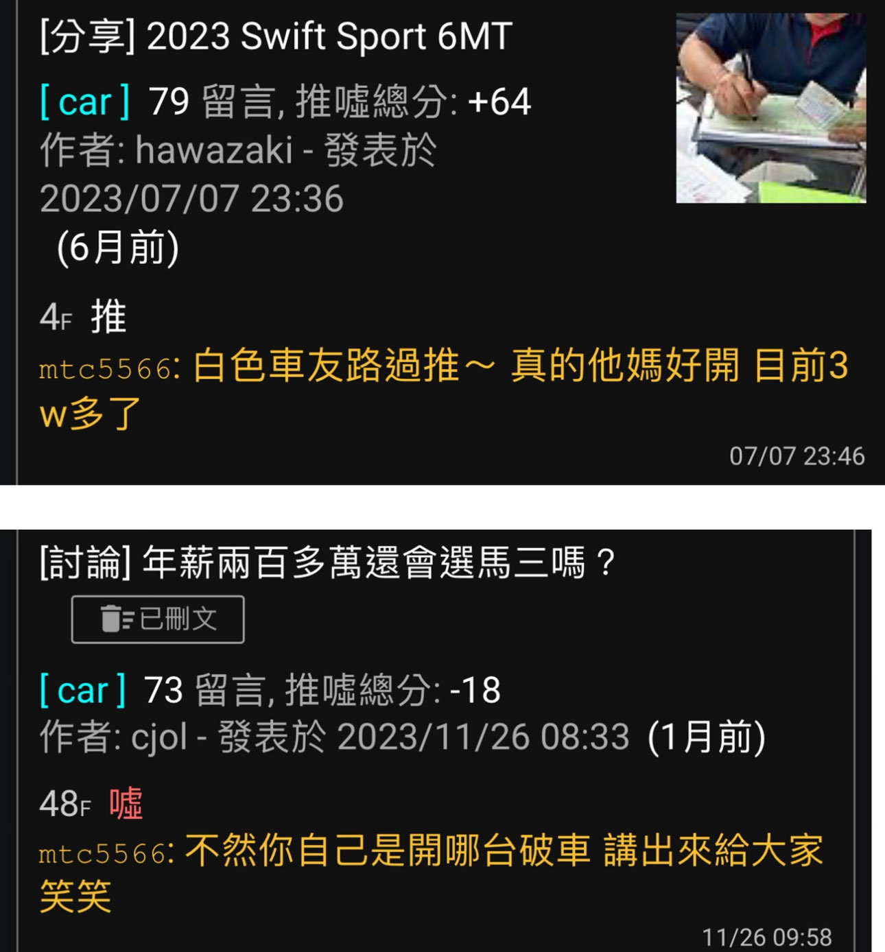 → LimYoHwan : 喊破車的不是你嗎 ,swift是好車啊 誰崩潰啊 01/24 16:56
