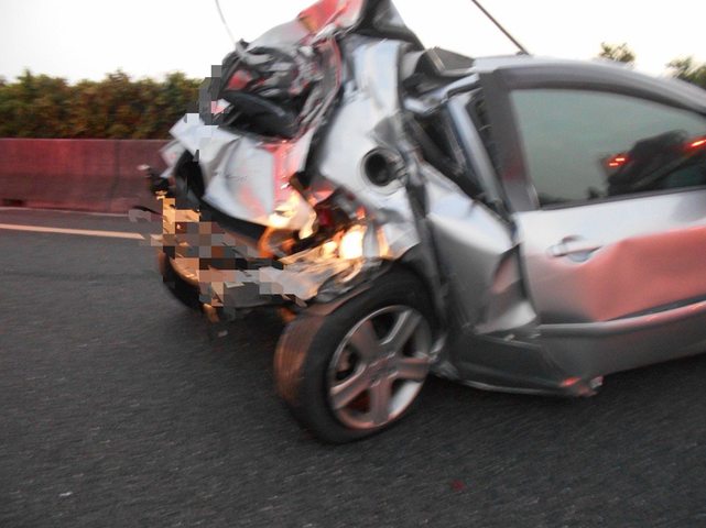 : 中山高,雲林路段,昨天清晨6點多發生追撞意外,自小客車,不知何故停在外線,聯結