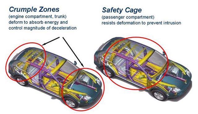 車廠會遵循這張圖safety cage(車籠結構)跟crumple zones(緩衝區)的概念