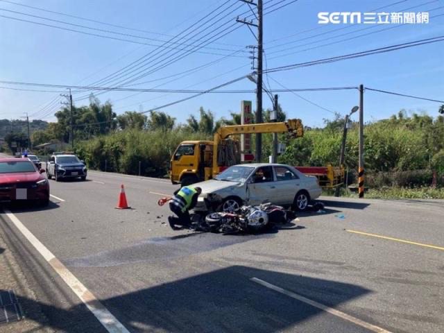 車,與轎車發生強烈的碰撞,造成重機幾乎解體,王男當場頭部受重創。