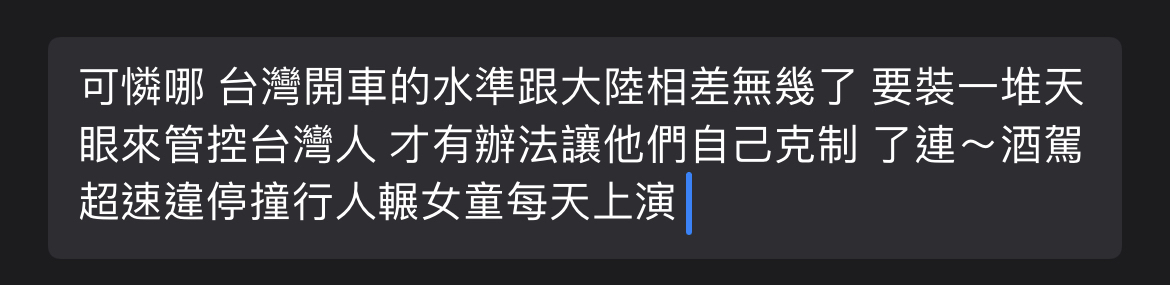 → p20310110 : 以前笑大陸天眼沒人權,結果台灣也是不得不跟進,各 02/20 15:26