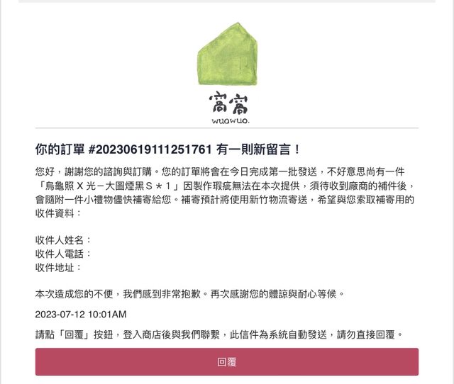 推 sarene: 原來失溫的客服信是負責人親自回的,我笑123.194.132.200 08/16 20:43