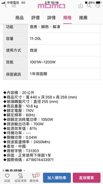 想法:有去家樂福看過實體,且天廚系列普遍滿推的,這台是有轉盤的,價格算便宜。