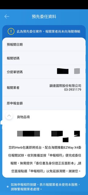 反而是EZWAY跳退播通知貨物已入關(如同過去購買美亞的經驗)