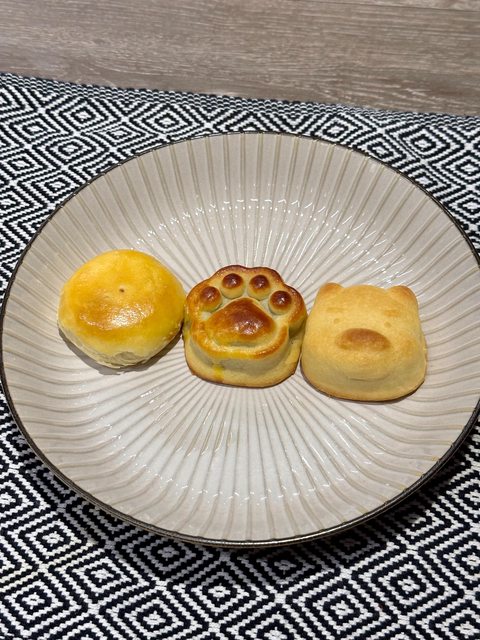 也比較偏大眾化,肉球流沙餅的外貌很討喜,內餡是奶油紅豆和鹹蛋黃流沙,但這個流沙