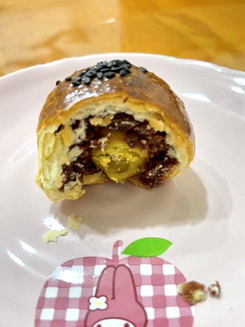 兩種口味,最經典的奶黃流心我幾乎每年都有吃到,鹹香鹹香的口感,會流出來的奶黃和
