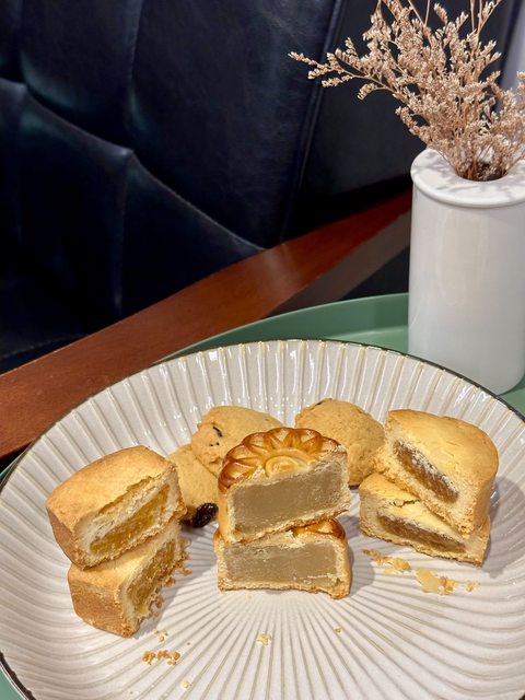 酥餅為主,包含廣式蓮蓉蓮子月餅、桔利酥、鳳梨酥、核桃葡萄餅乾,桔利酥和鳳梨酥都