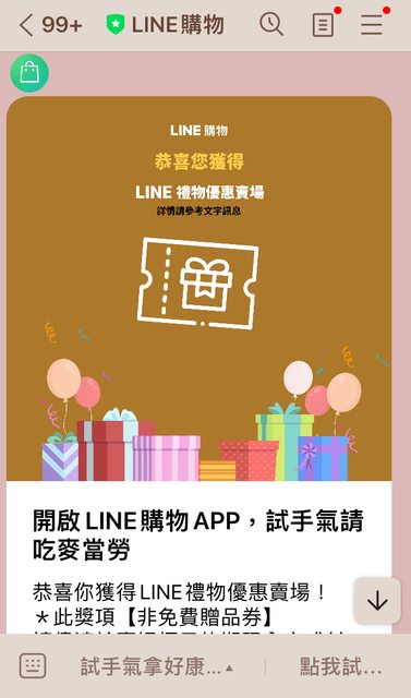 點進去看,所謂的獎項是「優惠賣場」和「試手氣請吃麥當勞」?