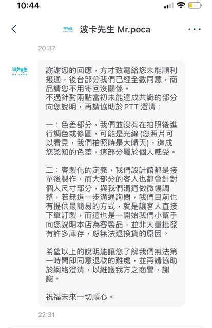 → coco267: 退貨流程,我們仍想再多做補償,微薄地提 114.45.79.168 11/01 21:07
