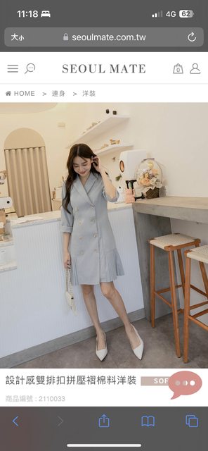 標題[協尋] 首爾妹-設計感雙排扣拼壓褶棉料洋裝
