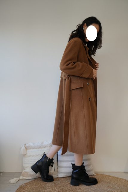 首先來分享 #02合肩西裝排釦長版羊毛大衣-混羊絨焦糖色