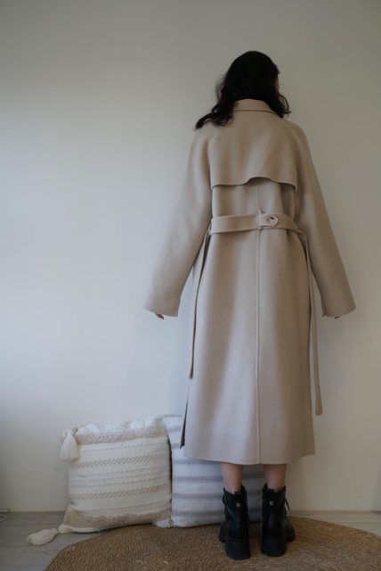 23FW#01 YOURZ。經典風衣款羊毛大衣-混羊絨 - F, 奶駝