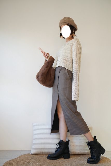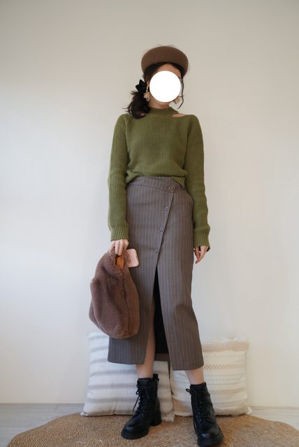 最後搭配的是橄欖綠的鏤空毛衣