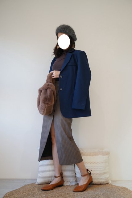 這套我是把9月購入的孔雀藍西外跟10月購入的咖色內搭和窄裙全部搭起來