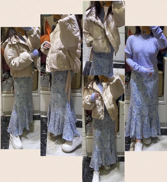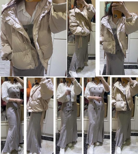 內容物:短版不知道如何形容顏色的羽絨外套,很難形容的貼身洋裝,