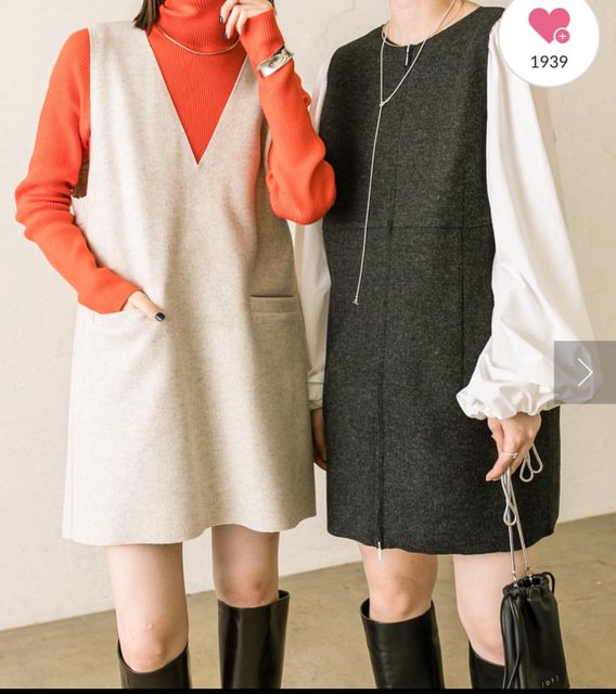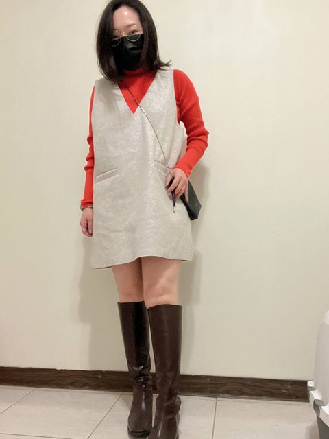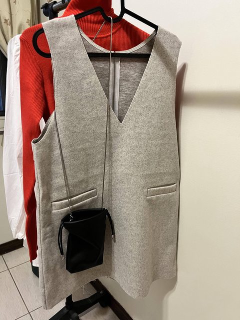 背心裙是有厚度的微絨感,穿起來應該不會太冷