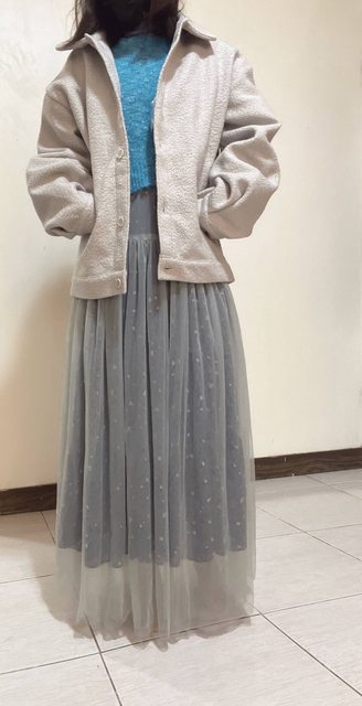 紗裙對我來說搭配上會需要想一下,上衣外套我今天就直接穿出門