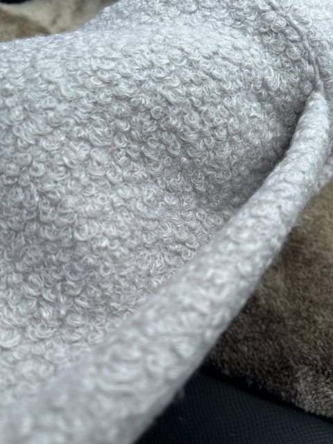 外套是銀灰色,也是很輕很暖,但袖子不知道為什麼超長