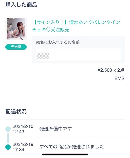我在日本經紀公司網站開的BASE商城買了寫真偶像的兩張簽名拍立得