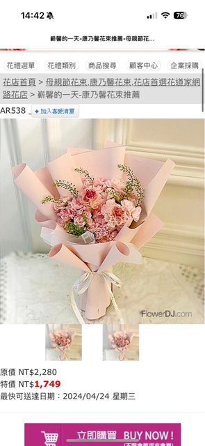 → hitachiin: 定在同一家花店買一支(大概五朵)康乃 114.37.126.41 05/12 22:12