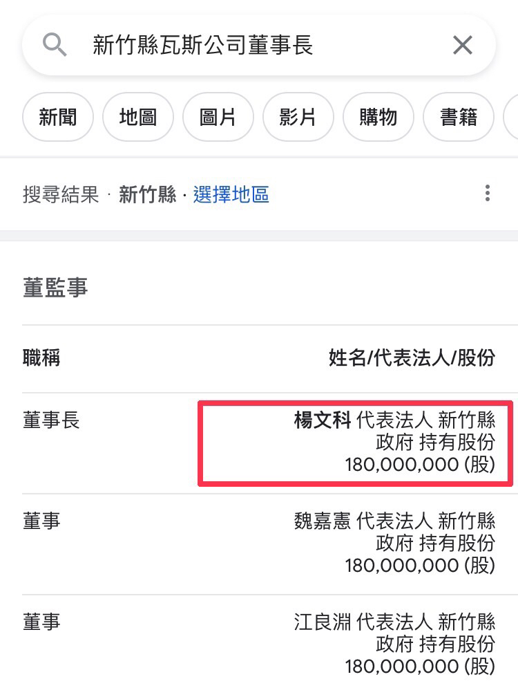 推 angele: 新竹瓦斯公司是新竹縣政府的,公司代表人是楊文科。 06/24 17:18