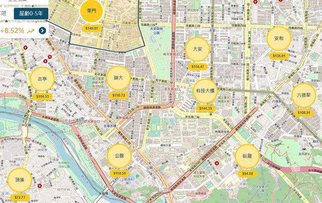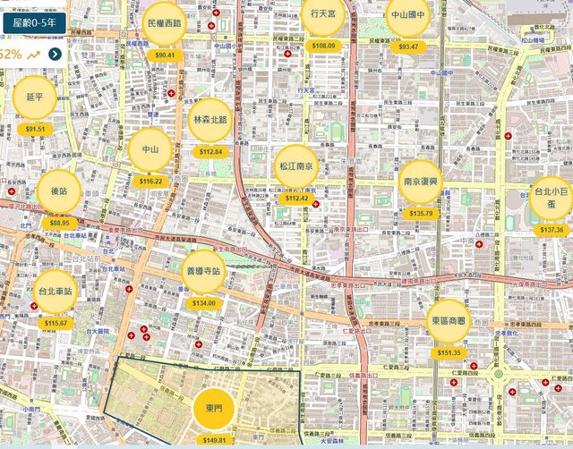 : 士林官邸(如圖) 屋齡0~5年房價已超越大直,來到約142萬/坪