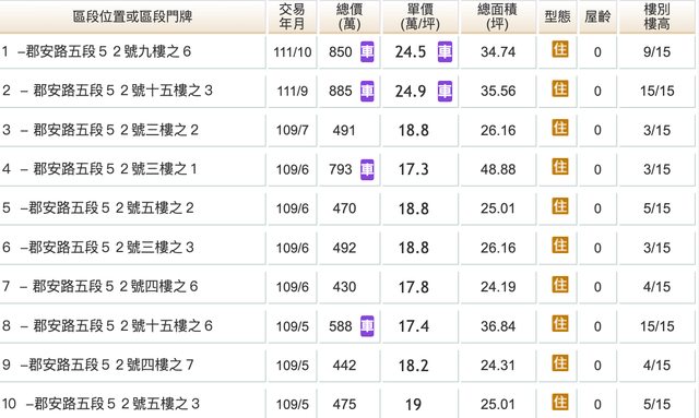 本物件附近地址實價登錄 :
