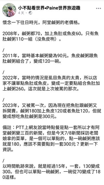 推 Marcuslin: 雞排也才漲多少 一堆飯的鹹粥漲超過一倍 07/12 14:42