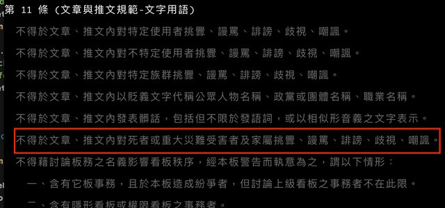 這次拿意外的死者來開玩笑是什麼意思? 幾歲了還這樣開玩笑 看不下去 噁心死 應該已經違反版規第 11 條了吧? 「不得於文章、推文內對死者或重大災難受害者及家屬挑釁、謾罵、誹謗、歧視、 嘲諷。」 https://i.imgur.com/lNhXlQE.png