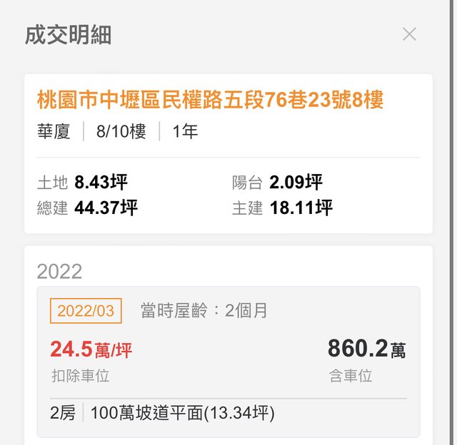 本物件兩年內上一筆實價登錄: