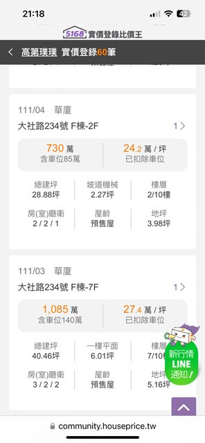 本物件兩年內上一筆實價登錄: