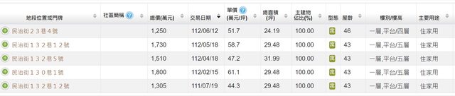 本物件附近地址實價登錄 :