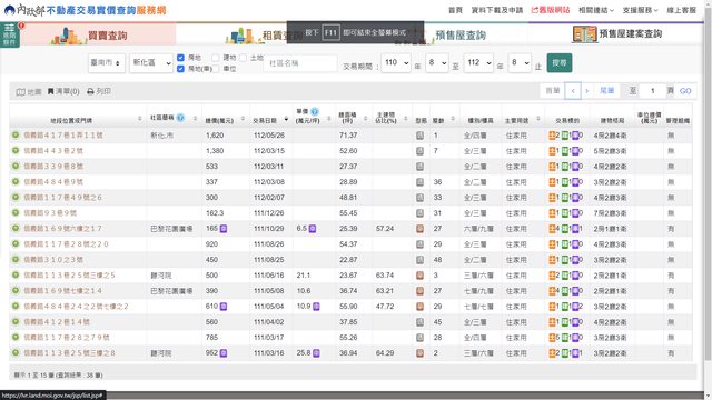 本物件地址實價登錄截圖: