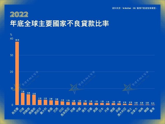 2022年底全球主要國家不良貸款比率。 全球25個主要國家全體銀行2022年底的不良貸款率中,表現相對差的國家為泰國、巴西、印 尼等三國逾2%以上,西班牙、義大利逾3%以上,另俄羅斯、阿聯酋與印度則高達6%至7% 多不等。烏克蘭因俄烏戰爭的緣故,導致許多民眾逃離國境、或者不幸喪生,不良貸款率驟 升至38.1%。 何世昌指出,烏克蘭雖然遭遇戰火導致不良貸款率狂飆,但因戰爭爆發後大量住房毀壞、物 資短缺,以及CPI年增率高達約25%,全國房價不跌反漲,去年Q4全國房價平均漲幅約16.7 %,又以戰火較少的西部各州房價漲幅最大,完全顛覆外界的印象。 表現較好的國家不良貸款率低於2%以下,如美國、英國、德國等十國不良貸款率介於1%至 2%之間,另瑞士、澳大利亞、加拿大、瑞典、韓國與台灣均低於1%以下,其中加拿大、韓 國與瑞典等三國僅約0.3%,並列全球次低,而台灣則以0.15%奪得全球最低的冠桂,遠遠 優於歐美大國。 何世昌分析,不良貸款率介於1%至2%之間是最常見的狀況,低於1%以下是資優班中的超 資優生。雖然台灣銀行不動產放款集中度高、不動產貸款餘額高達十餘兆元,但因去年電子 業景氣火熱,經濟成長強勁,以及央行嚴格管控放款,不動產放款品質優良,去年末住宅貸 款逾放比只有0.07%、建築貸款逾放比亦僅約0.08%,是壓低整體不良貸款率的功臣。 何世昌進一步指出,雖然近來爛尾樓、建商倒閉議題發酵,但與其他國家相比,台灣爆雷的 機率相對低許多,購屋族只要慎選建商與代銷,就能一圓成家夢。其次,若與美國比較,美 國去年底住宅貸款違約率約1.78%,台灣卻僅約0.07%,顯示台灣房市與金融業體系相對穩 健,爆發危機的機率微乎其微。 5.完整新聞連結: https://money.udn.com/money/story/5621/7393700 6.備註: 看來房價很難跌惹 -- ※ 發信站: 批踢踢實業坊(ptt-website.tw), 來自: 118.231.128.76 (臺灣) ※ 文章網址: https://ptt-website.tw/Gossiping/M.1693099119.A.97A